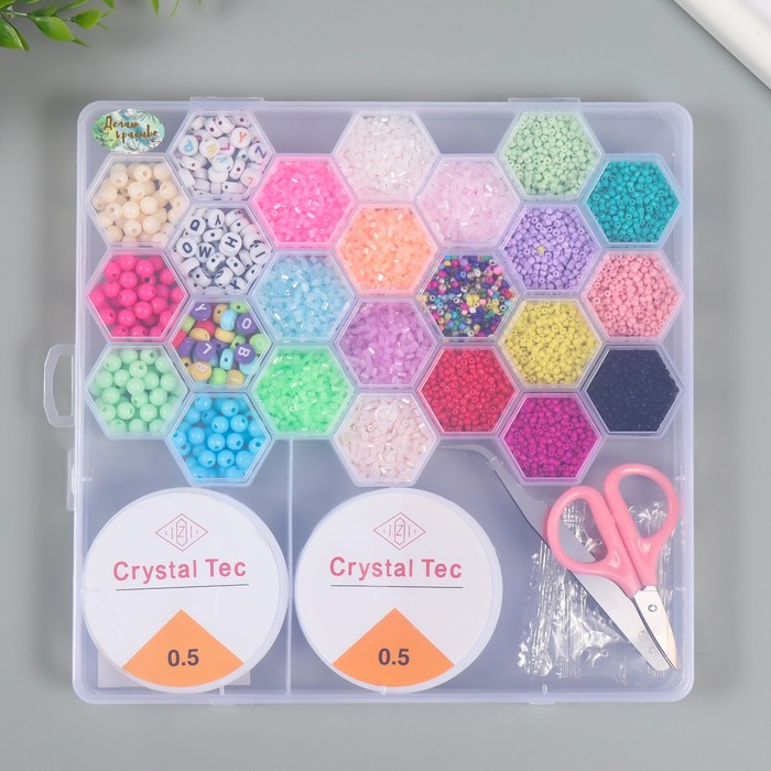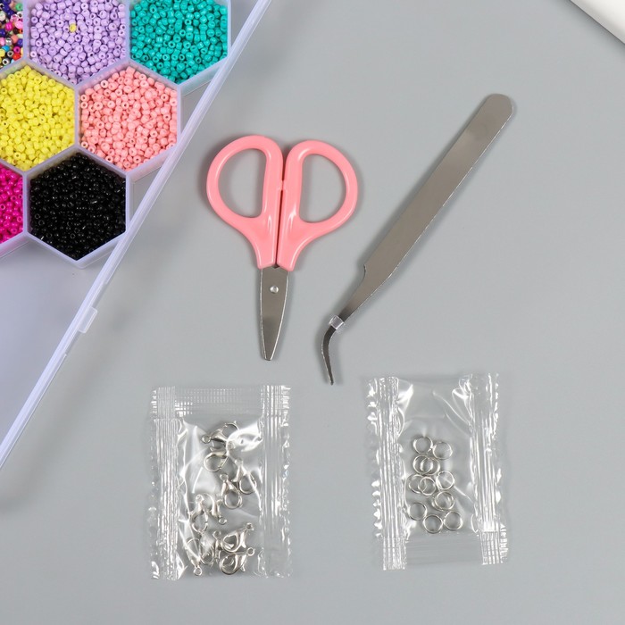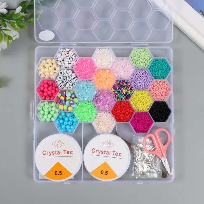 Бисер стекло 8/0, 12/0 в шкатулке «Летний», бусины, леска, ножницы, пинцет, 20×20×1.8 см — Характеристики