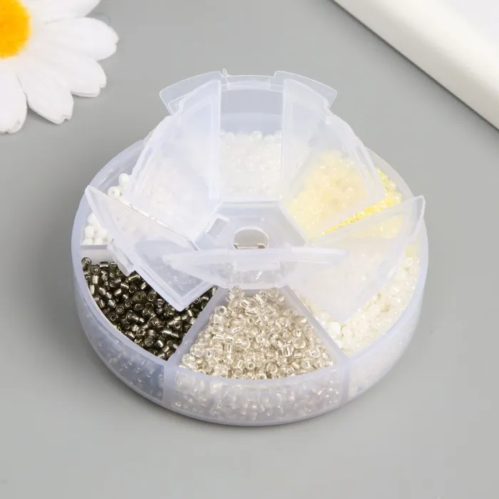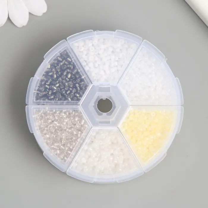 Бисер стекло 8/0 (3 мм) в шкатулке «Белый», 6 цветов × 10 г, 8×8×2 см — Характеристики