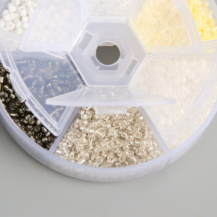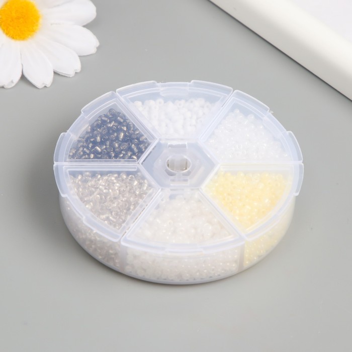 Бисер стекло 8/0 (3 мм) в шкатулке «Белый», 6 цветов × 10 г, 8×8×2 см