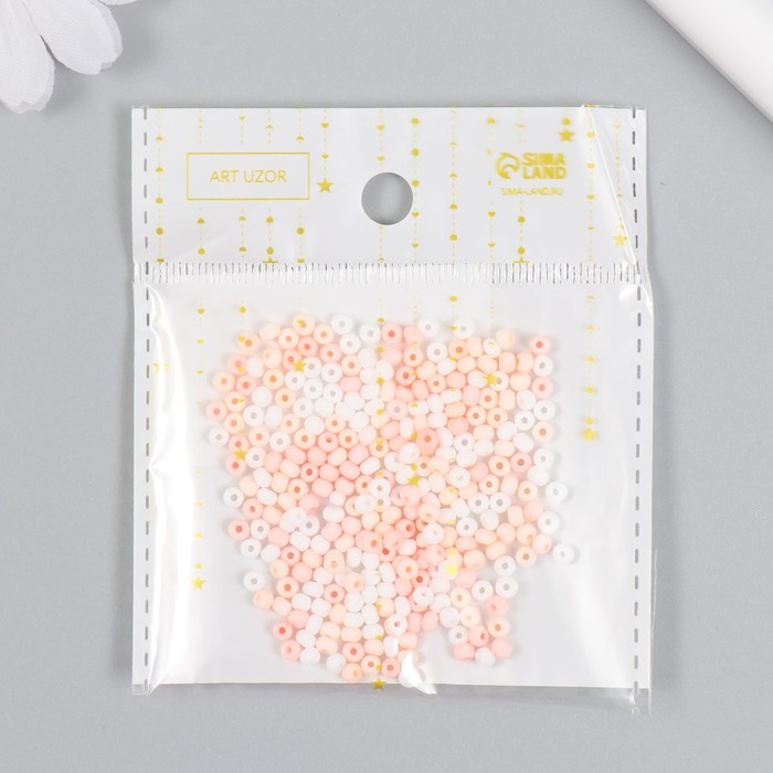 Бисер стекло 8/0 "Маршмеллоу. Матовый. Меланж. Персик" 10 гр