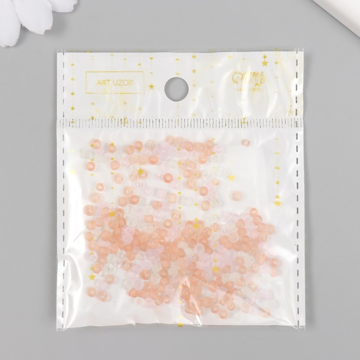 Бисер стекло 8/0 «Матовый полупрозрачный. Меланж бледно красный» 10 г
