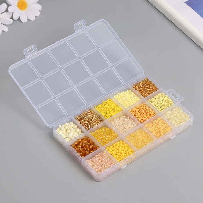 Бисер стекло 6/0, 8/0, 12/0 в шкатулке «Жёлтый», стеклярус, 15.5×9.5×1.6 см