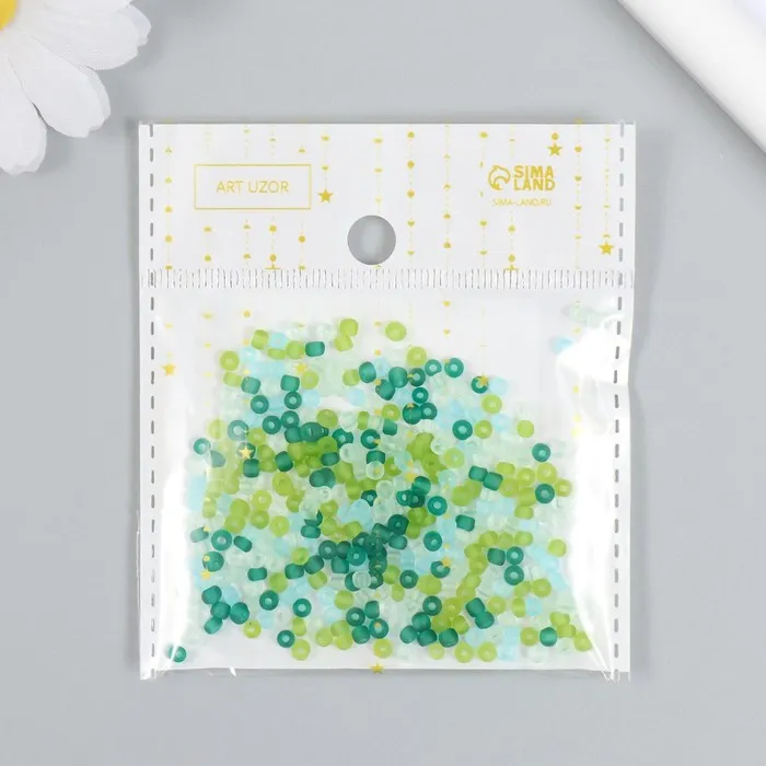 Бисер стекло 8/0 «Матовый полупрозрачный. Меланж ярко-зелёный», 10 г — Характеристики