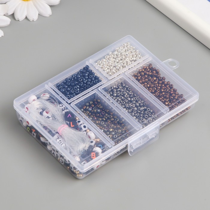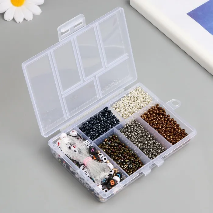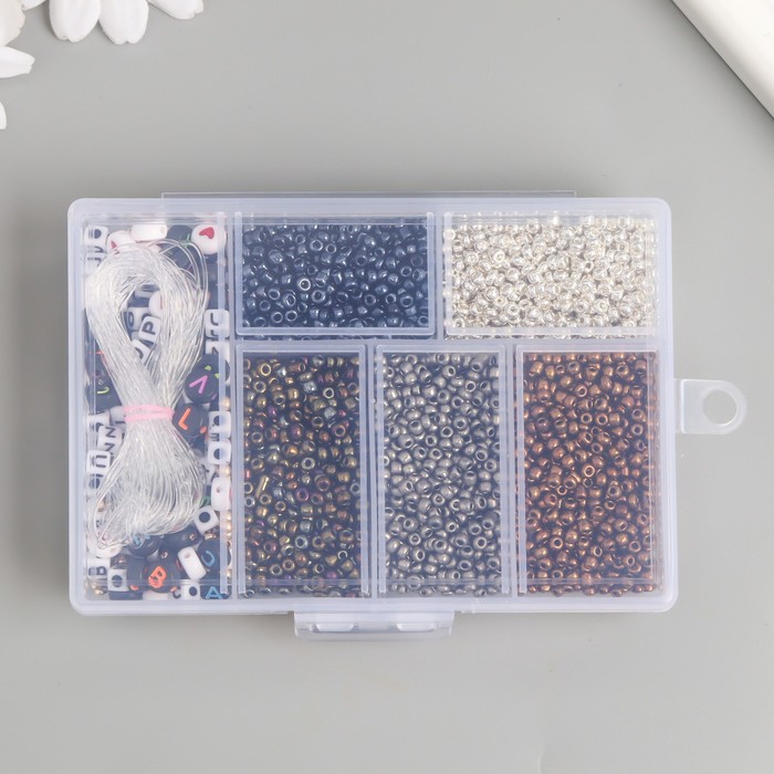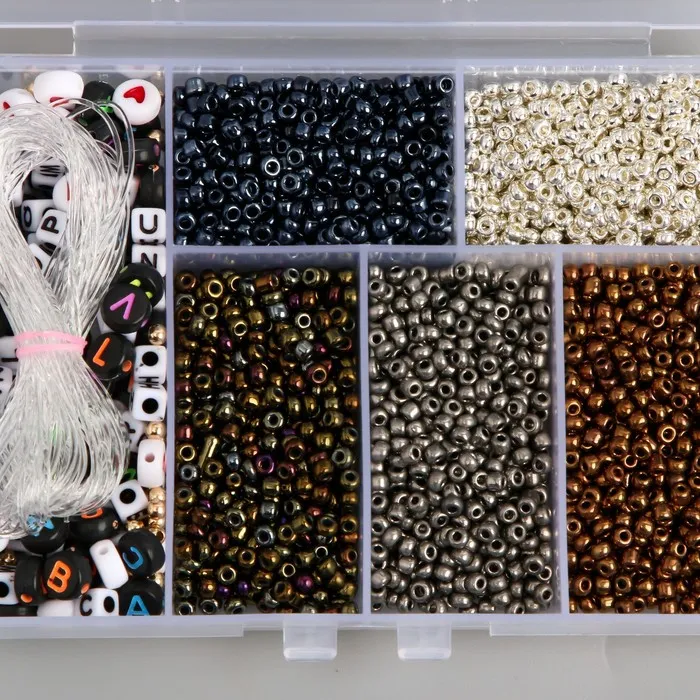 Бисер стекло 8/0 в шкатулке «Металлик», бусины + нить 0.8 мм, 5 м, 12×8.4×2.2 см — Характеристики