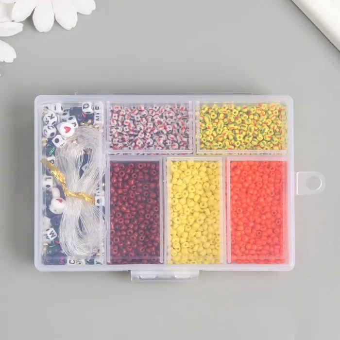 Бисер стекло 8/0 в шкатулке «Осень», бусины + нить 0.8 мм, 5 м, 12×8.4×2.2 см — Характеристики