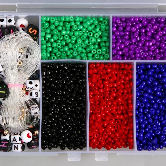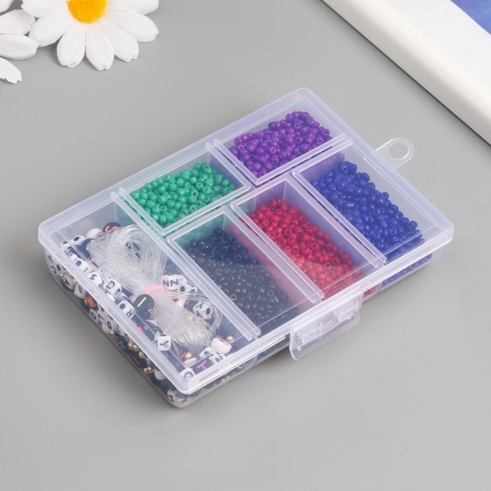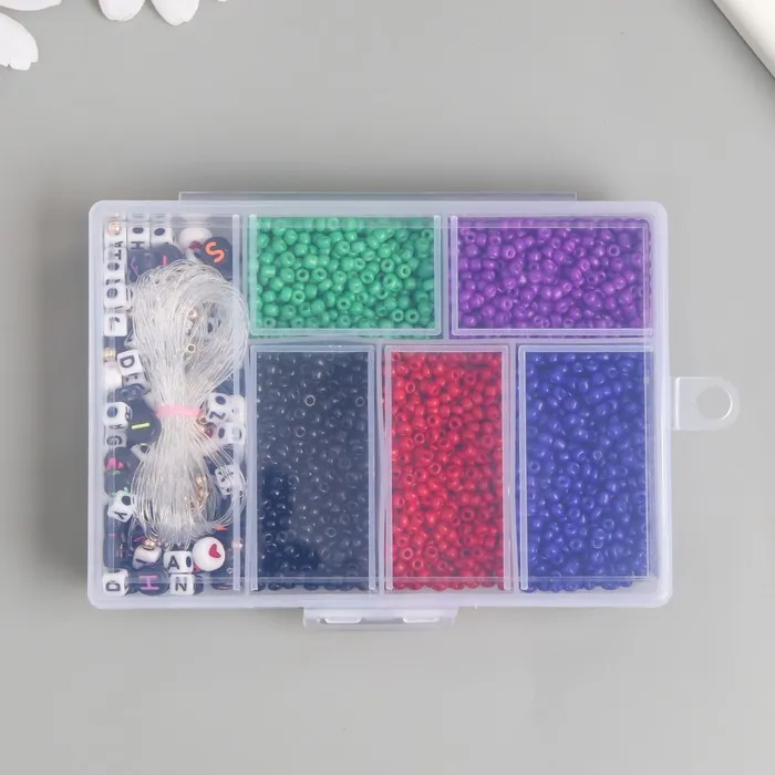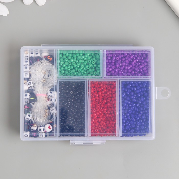 Бисер стекло 8/0 в шкатулке «Тёмный», бусины + нить 0.8 мм, 5 м, 12×8.4×2.2 см — Характеристики