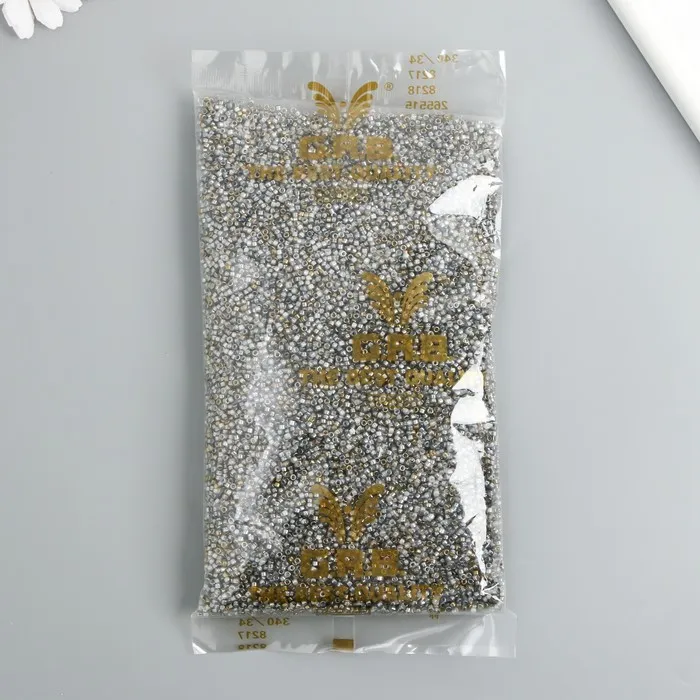 Бисер стекло 9/0 «Цилиндры. Серебро» двухцветный, не выцветает 450 г