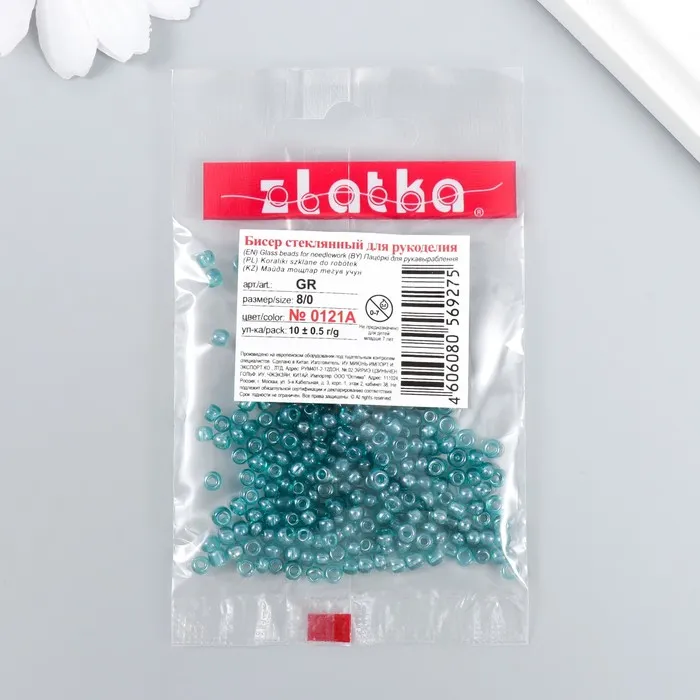 Бисер "Zlatka" 08/0, 3 мм, 10 г 0121A т.бирюзовый — Характеристики