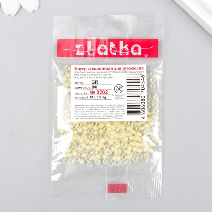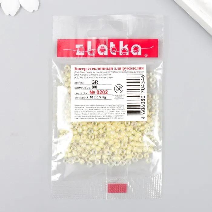 Бисер "Zlatka" 08/0, 3 мм, 10 г 0202 желтый — Характеристики
