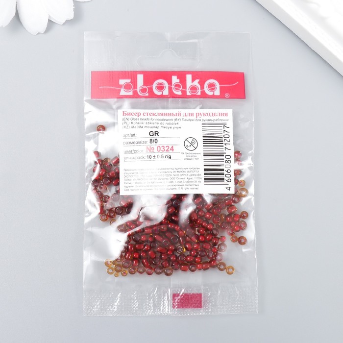 Бисер "Zlatka" 08/0, 3 мм, 10 г 0324 т.красный