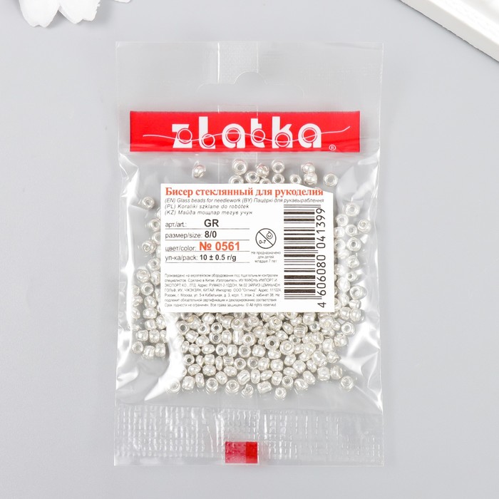 Бисер "Zlatka" 08/0, 3 мм, 10 г 0561 серебряный — Характеристики