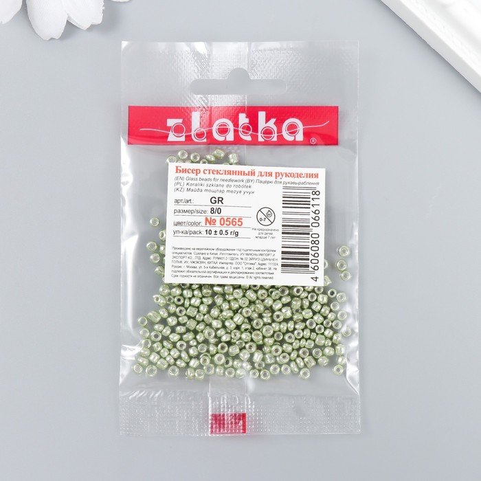 Бисер "Zlatka" 08/0, 3 мм, 10 г 0565 зеленый — Характеристики