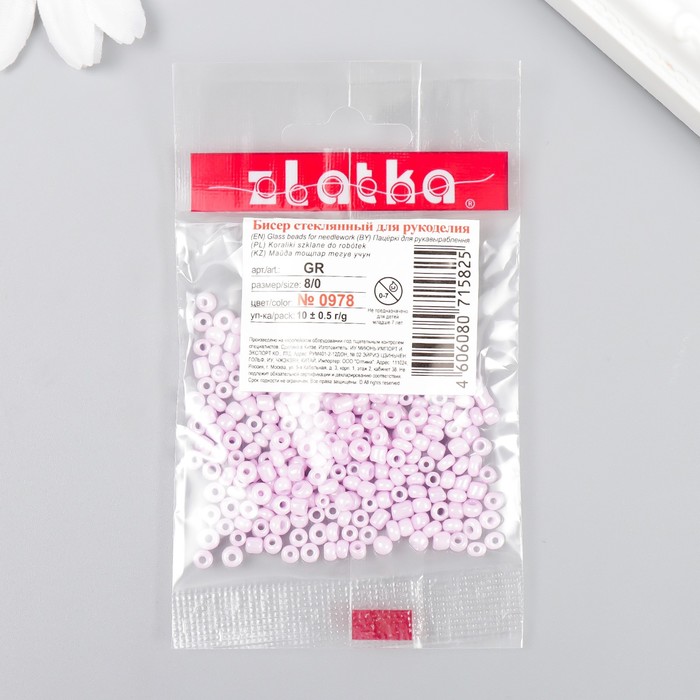 Бисер "Zlatka" 08/0, 3 мм, 10 г 0978 св.сиреневый — Характеристики