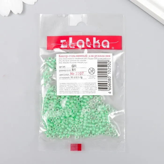 Бисер "Zlatka" 08/0, 3 мм, 10 г 2207 св.зеленый — Характеристики
