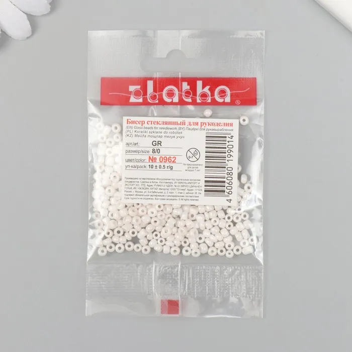 Бисер "Zlatka" 08/0, 3 мм, 10 г белый — Характеристики