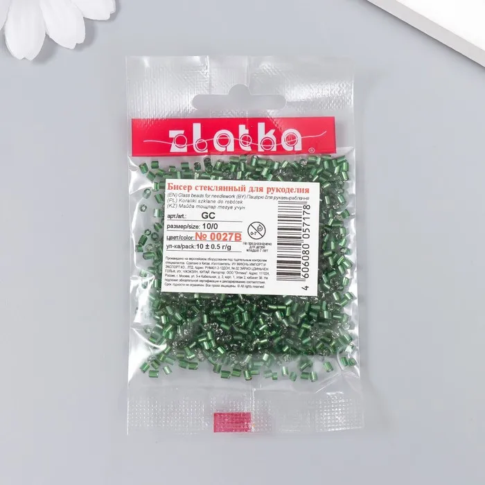 Бисер "Zlatka" рубка 10/0, 10 г, №0027В т.зеленый — Характеристики