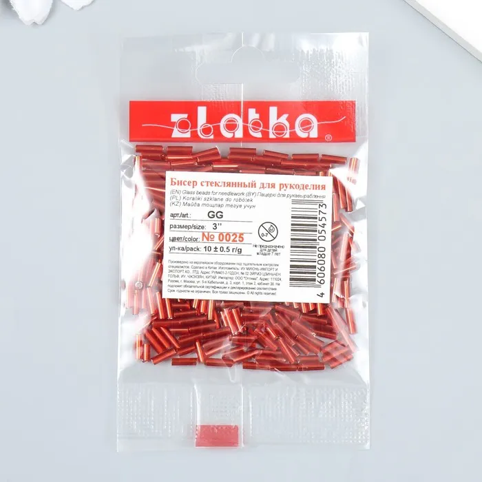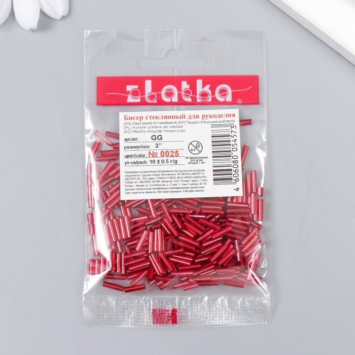 Бисер "Zlatka" стеклярус 10 г, размер 3", 6 мм, №0025 красный МИКС 93"78547 — Характеристики