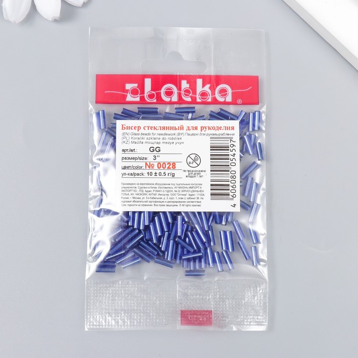 Бисер "Zlatka" стеклярус 10 г, размер 3", 6 мм, №0028 т.синий 93"78550 — Характеристики
