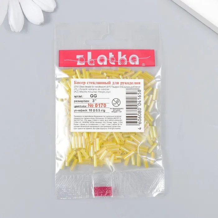 Бисер "Zlatka" стеклярус 10 г, размер 3", 6 мм, №0170 желтый 93"78561 — Характеристики