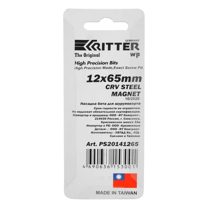 Бита с торцевой головкой Ritter WP PS20141265, с магнитом, сталь CrV, 12×65 мм — Характеристики