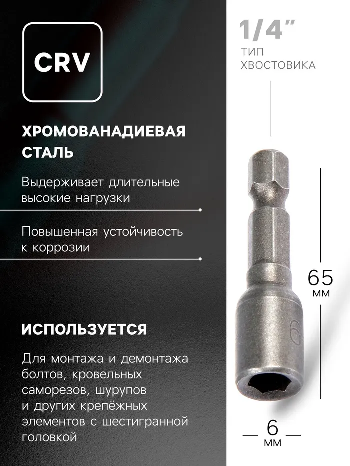 Бита с торцевой головкой ТУНДРА, удлиненная, сталь CrV, 8 х 100 мм — Характеристики