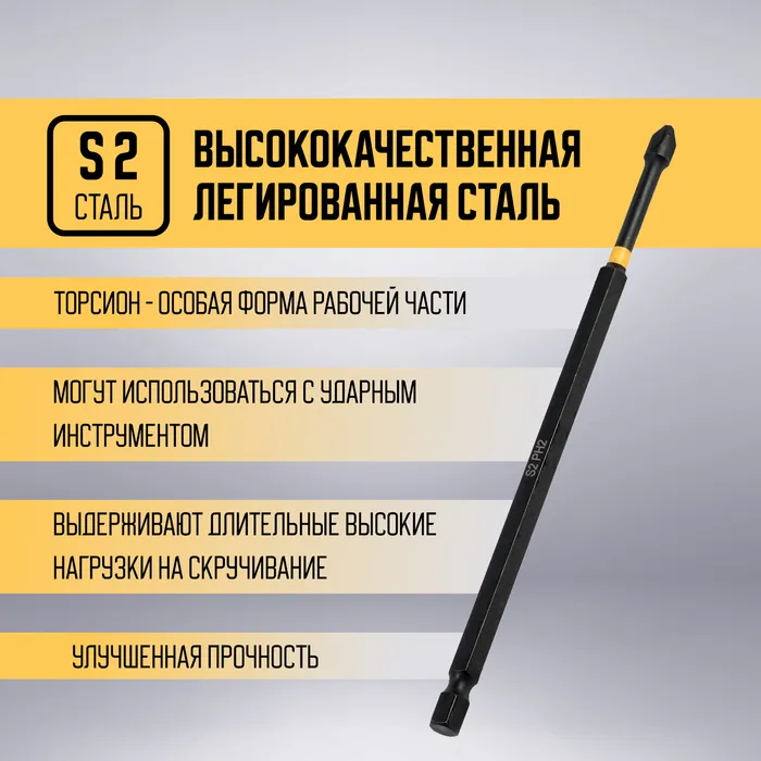 Бита с типом наконечника PH2 и длиной 150 мм — надёжный инструмент для профессионалов. Торсионный механизм и сталь S2 обеспечивают долговечность и удобство использования.