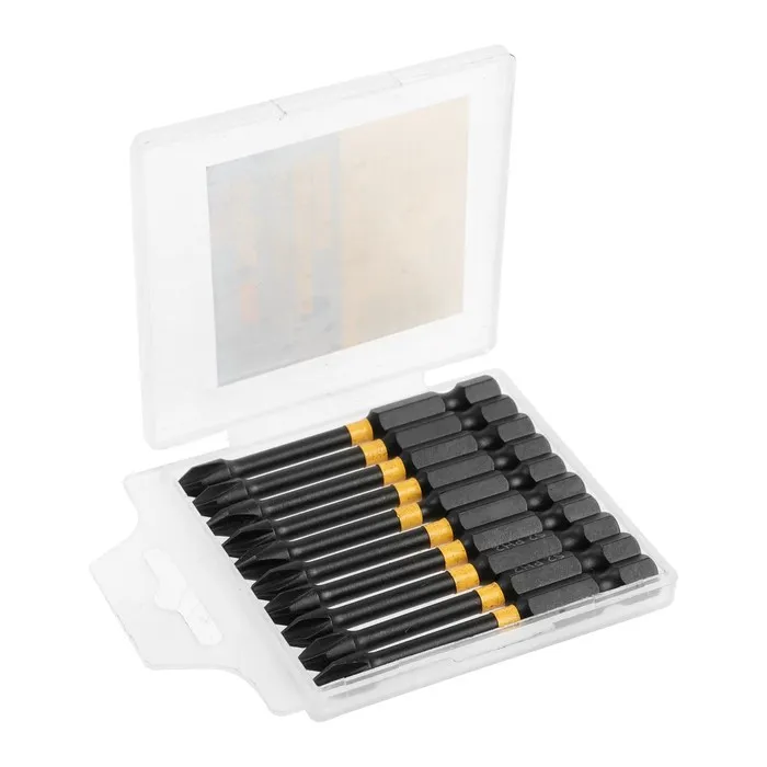 Биты с типом PH2 обеспечивают высокую производительность и надёжность в работе. Торсионный механизм предотвращает повреждение бит и крепежа, что делает их идеальными для интенсивного использования. Пластиковый кейс упрощает хранение и транспортировку, сохраняя биты в отличном состоянии.