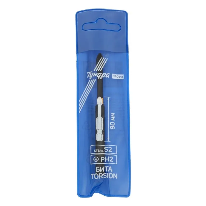 Бита ТУНДРА ПРОФИ, Torsion, сталь S2, PH2 х 90 мм, пвх-чехол — Характеристики