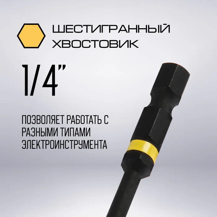 Технология Torsion с отрывной лентой защищает торцевую часть от перегрузок. Хвостовик диаметром 1/4" обеспечивает совместимость с большинством ручных и электроинструментов. Производитель ТУНДРА создал решение, которое сочетает в себе надёжность и удобство использования.