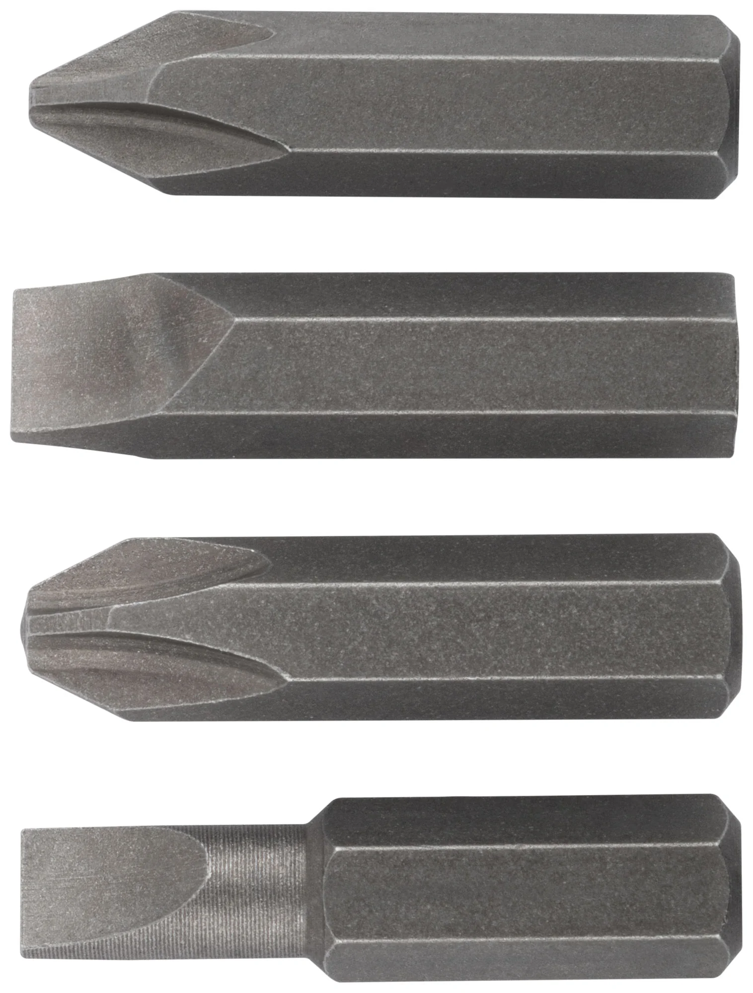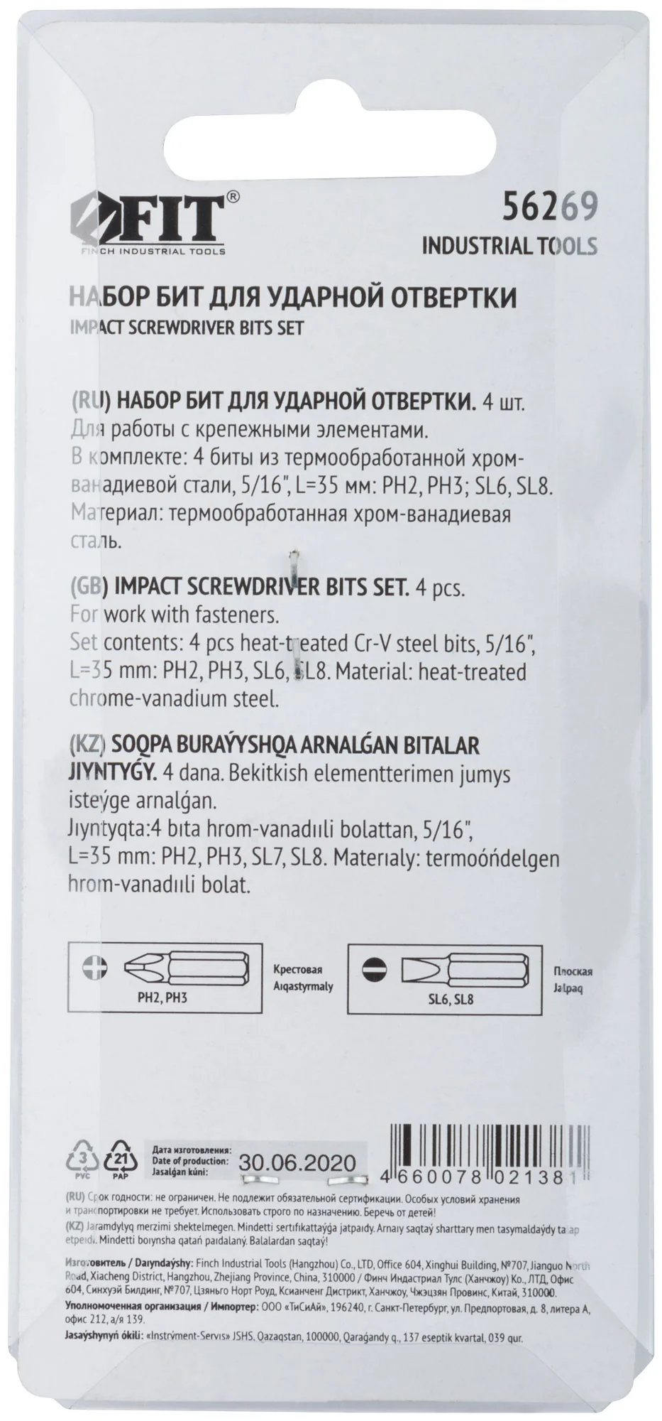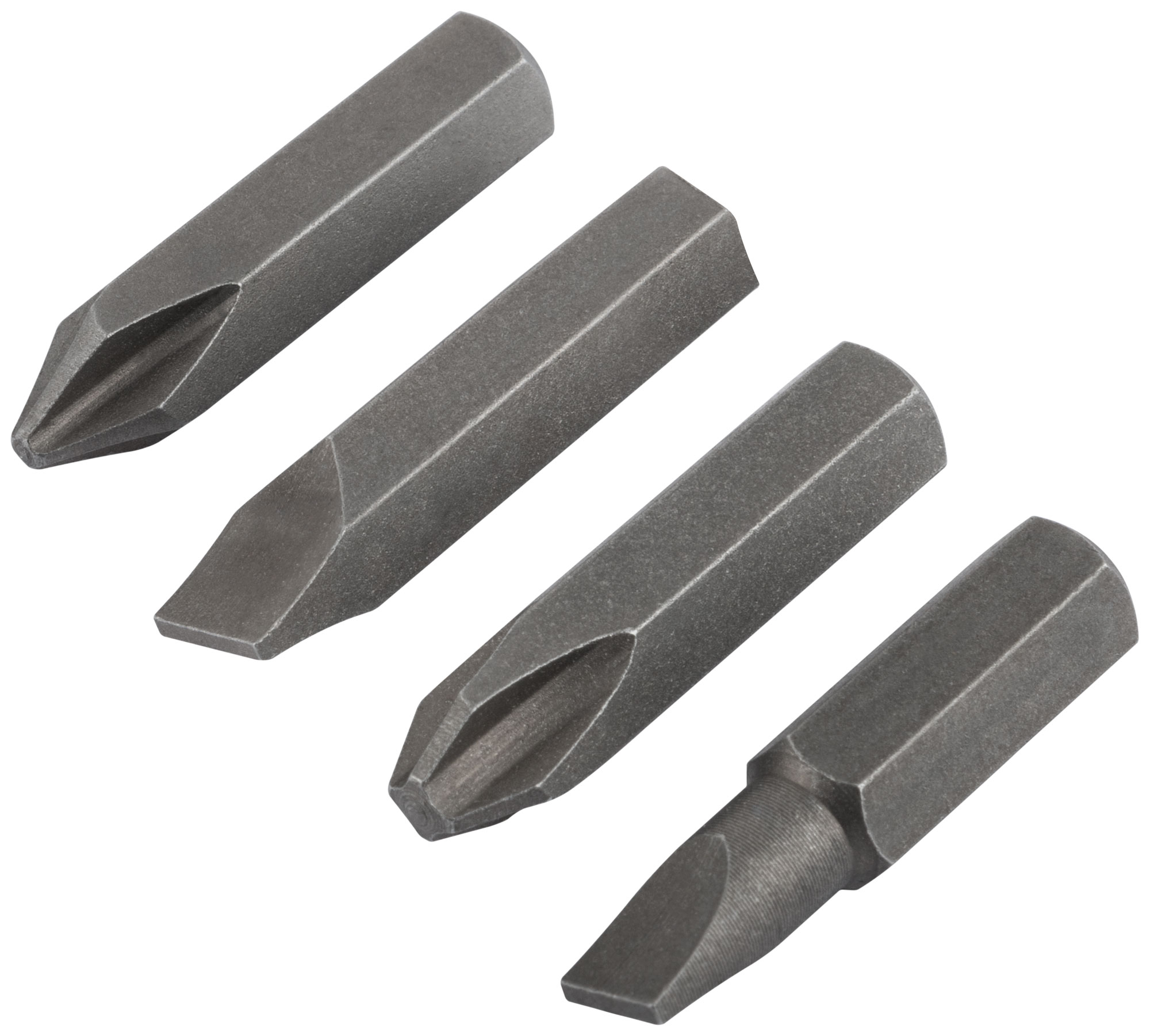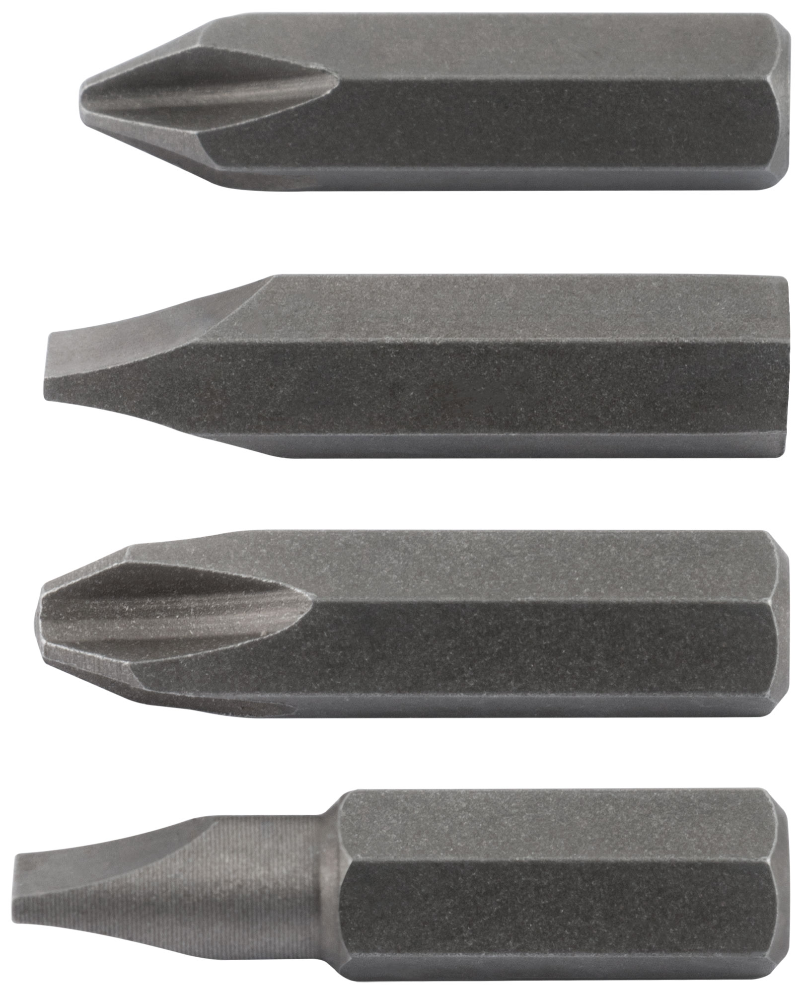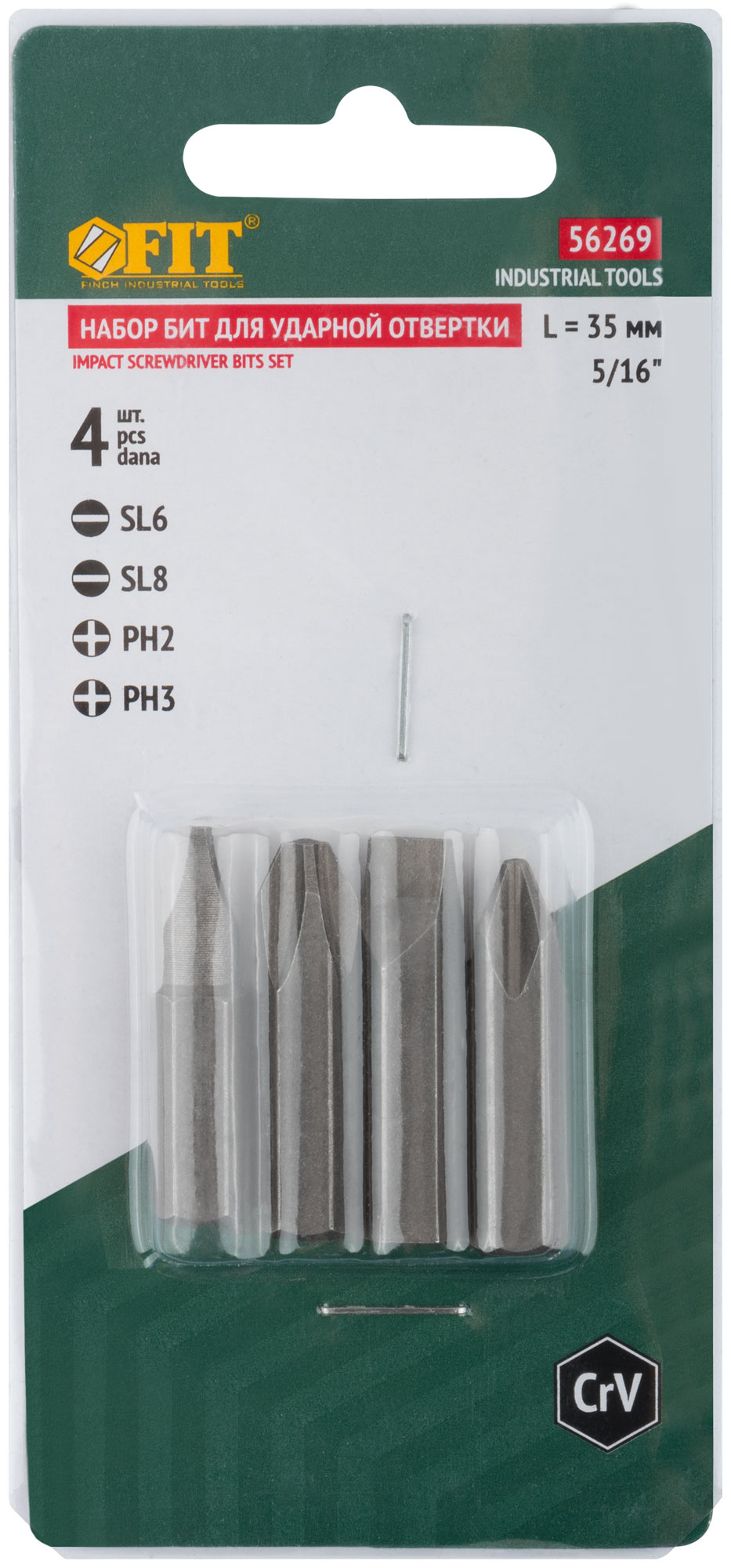 Биты изготовлены из хром-ванадиевой стали, что обеспечивает долговечность и устойчивость к износу. В набор входят биты PH2, PH3, SL6 и SL8, что делает его универсальным для различных задач. Посадочный размер 5/16'' подходит для большинства стандартных отверток.