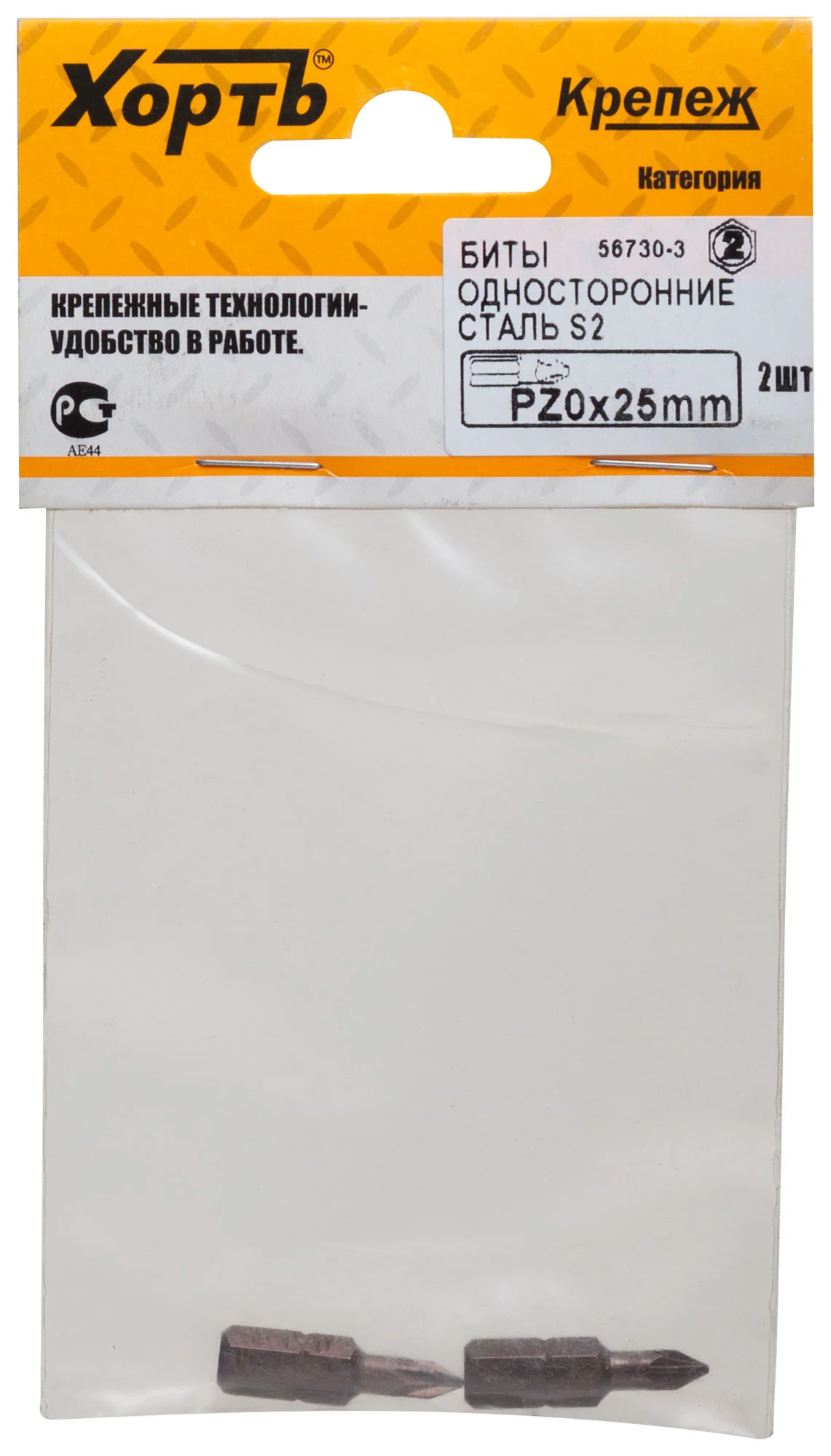 Биты односторонние сталь S2, РZ 0 х 25 мм 2 шт. (фасовка)