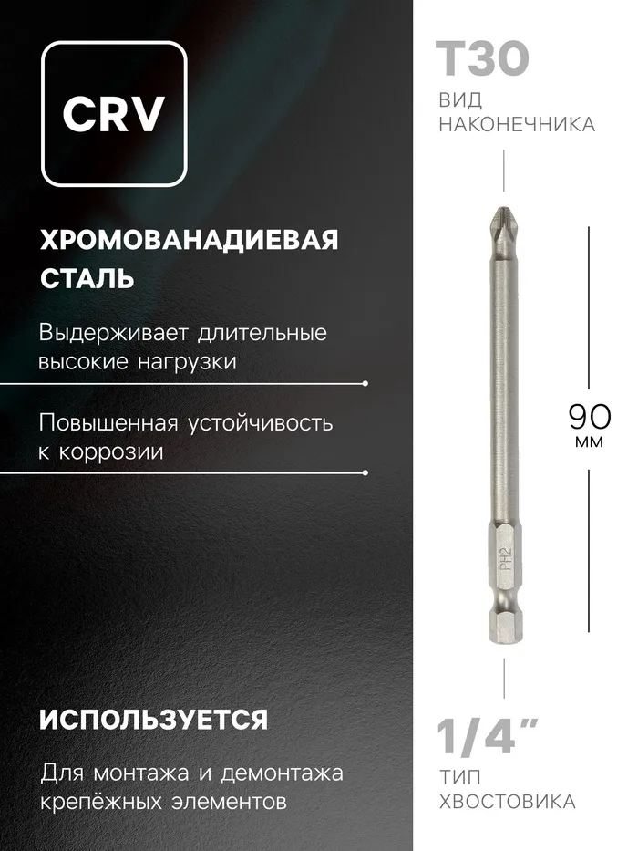 - Сталь Japan S2: Материал отличается повышенной ударной вязкостью и устойчивостью к кручению. Биты служат дольше обычных и сохраняют грани даже при работе с жесткими шурупами.