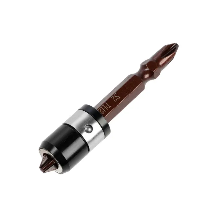 - Ограничитель крутящего момента: Шестигранная муфта у основания предотвращает перегрузку биты в патроне шуруповерта. Это защищает и биту, и сам инструмент от повреждения при заклинивании шурупа.