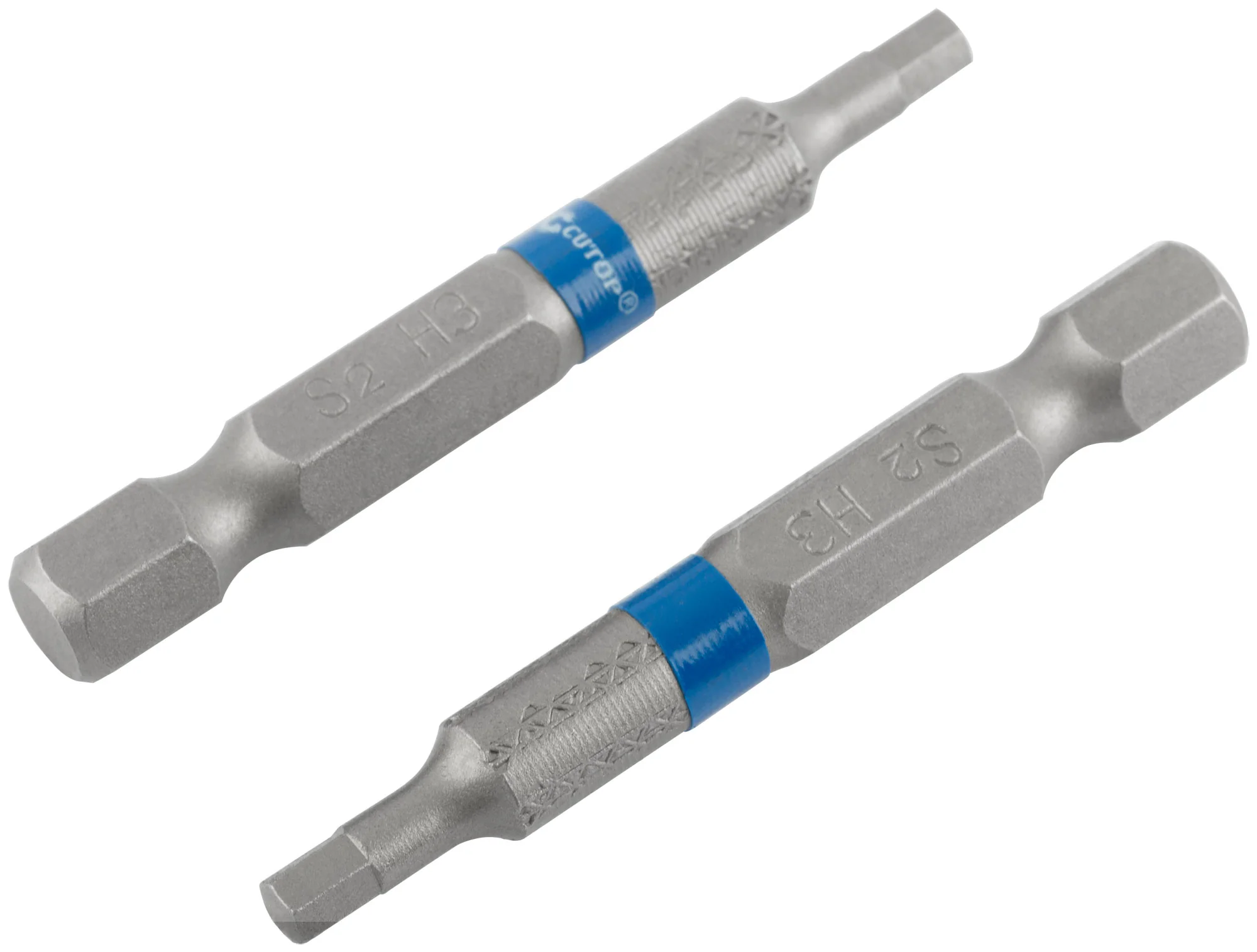 Биты изготовлены из тайваньской стали марки S2, признанной за свою прочность и устойчивость. Ребра биты производятся методом холодной штамповки, что гарантирует точное соответствие спецификации, а специальный процесс закалки при 870°C придает насадке твердость в 60 HRC.