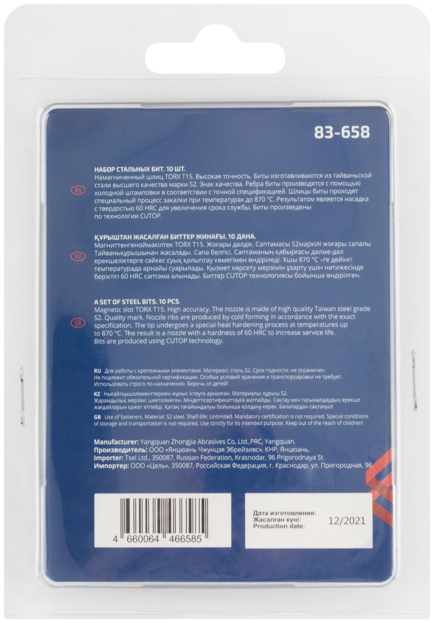 Используйте набор бит TORX T15 от CUTOP для точной и эффективной работы с крепежом. Этот комплект из 10 штук идеально подходит для профессионального использования, обеспечивая надежное крепление в ответственных узлах.