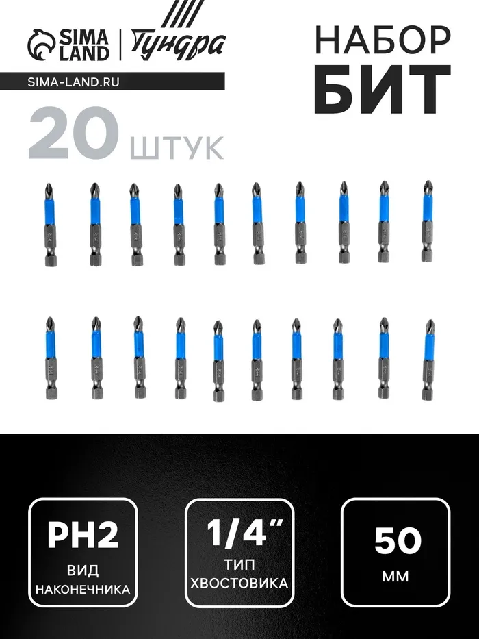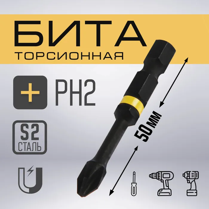 Биты ТУНДРА, намагниченные, сталь CrV, PH2 х 127 мм, 2 шт. — Характеристики