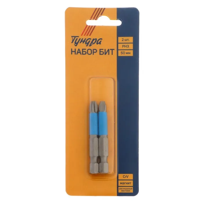 Биты ТУНДРА, намагниченные, сталь CrV, PH3 х 50 мм, 2 шт. — Характеристики