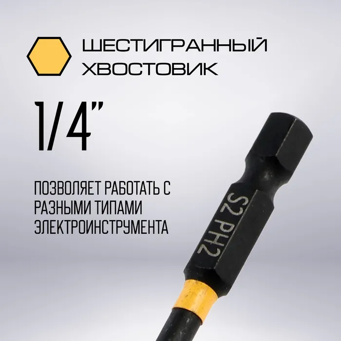Сталь S2 гарантирует стойкость к механическим нагрузкам. Конструкция с хвостовиком 1/4" обеспечивает совместимость с большинством современных инструментов. Производитель ТУНДРА ПРОФИ создал инструмент, который служит долго и не подводит в ответственные моменты.