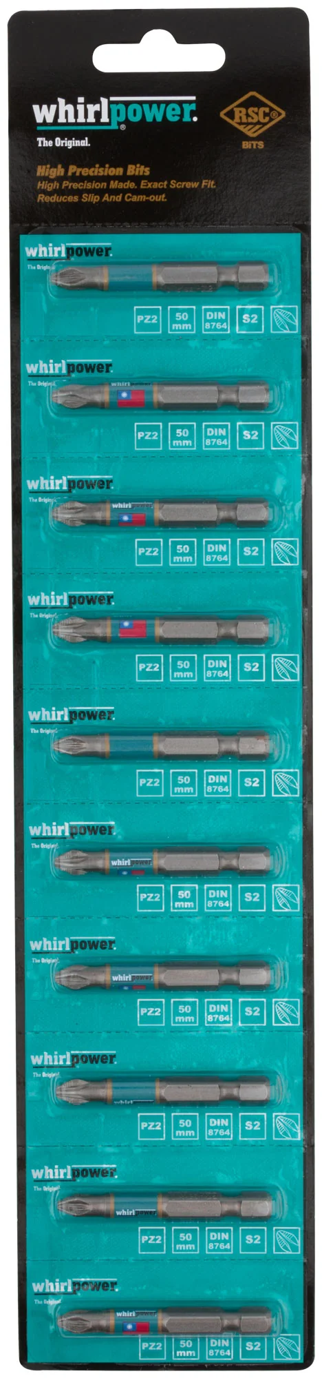 Биты WP, сталь S2, с насечкой, Профи, 50 мм PZ2, 10 шт.