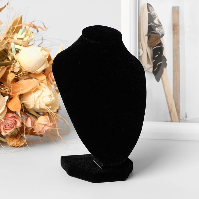 Изготовленный из качественного текстиля, этот бюст отличается не только привлекательным внешним видом, но и стойкостью к износу. Он бережно хранит ваши украшения, предотвращая их запутывание и повреждения, а благодаря своему дизайну будет гармонично смотреться как на туалетном столике, так и в витрине ювелирного магазина.
