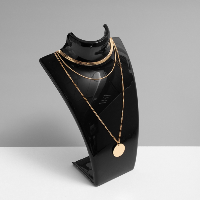 Изготовленный из прочного пластика, этот бюст не только умело демонстрирует ваше ювелирное искусство, но и служит надежной опорой для цепочек и кулонов, избавляя от запутывания. Он станет настоящей находкой для любителей стиля и порядка.