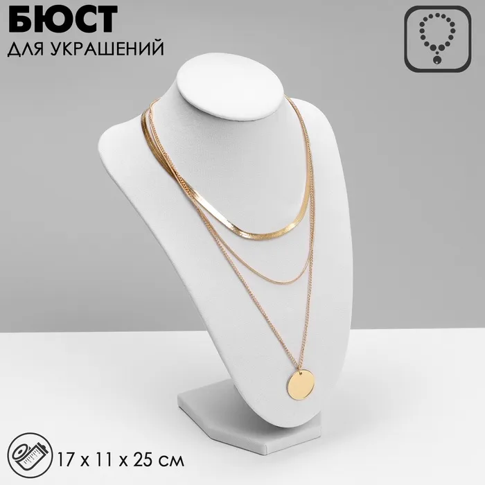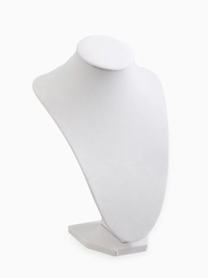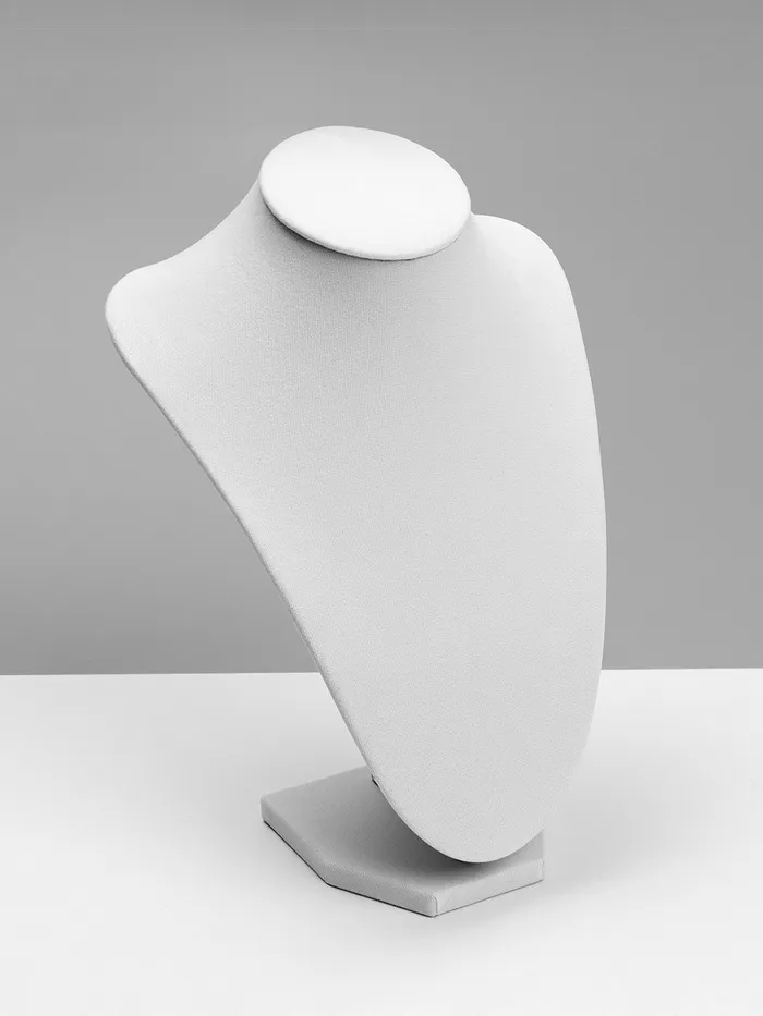 Изготовленный из высококачественного текстиля, бюст предоставляет мягкую и благородную текстуру, что делает его привлекательным как в быту, так и в качестве элемента декора в ювелирных бутиках. Белый цвет подчеркивает чистоту линий и форму, создавая гармоничное пространство для хранения цепочек и кулонов.