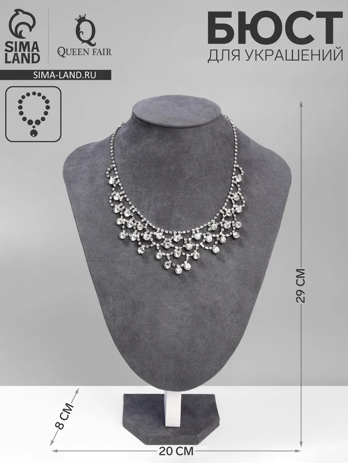 Бюст для украшений QF, 20×8×29 см, h=29 см, флок, серый графит — Характеристики