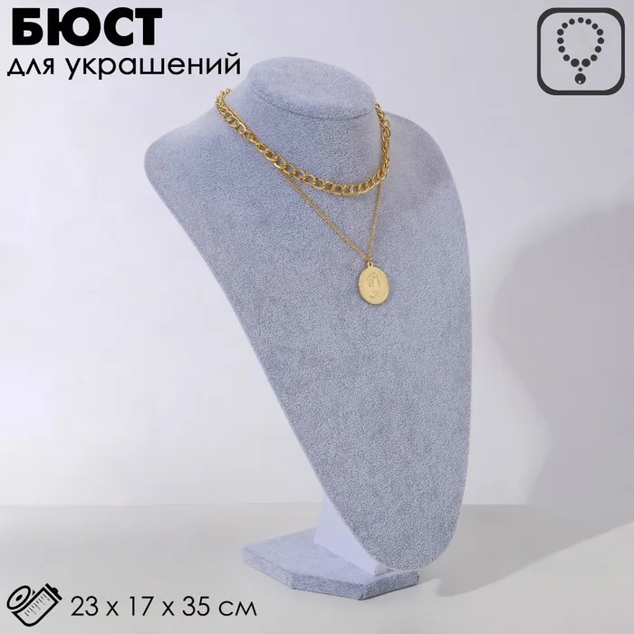 Бюст для украшений QF, 23×17×35 см, h=35 см, серый — Характеристики