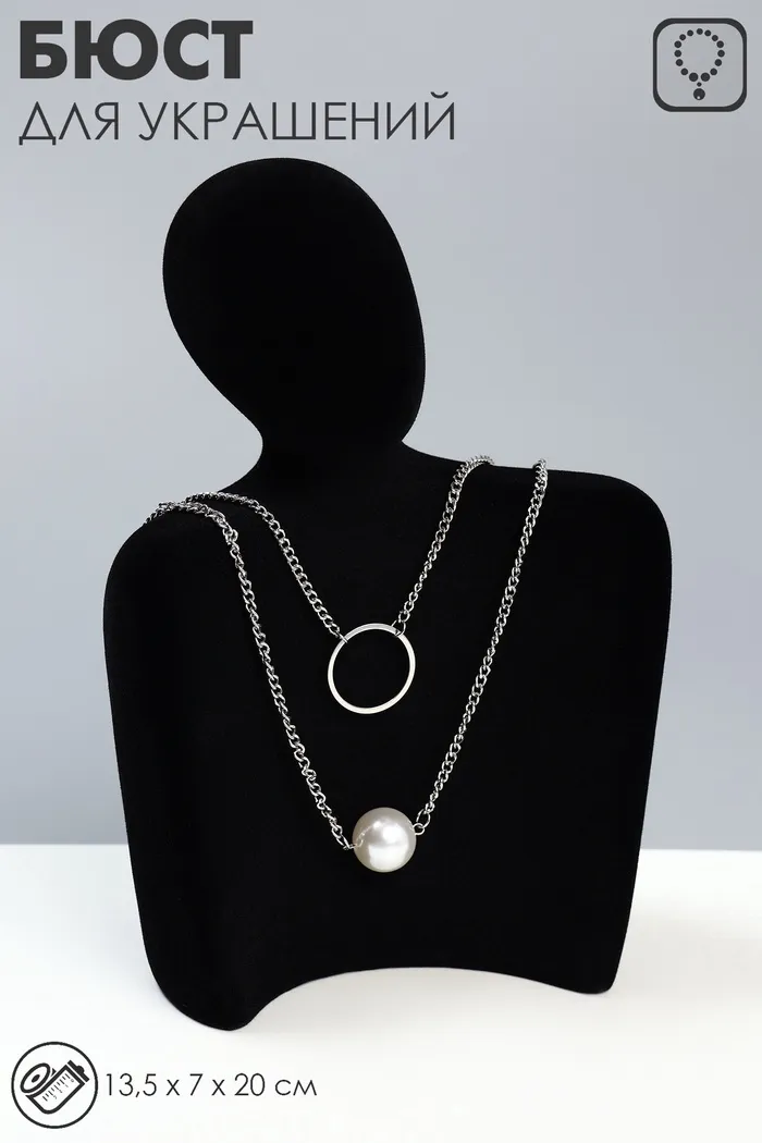 Изготовленная из высококачественного флок-материала, она не только красивана, но и практична, обеспечивая надежное хранение цепочек и кулонов. Эргономичная форма бюста позволяет легко демонстрировать и организовать ваши аксессуары, придавая им статус искусства.