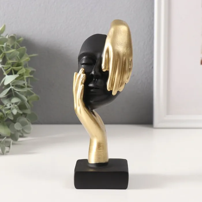 Бюст фигурка полистоун «Маска с золотой рукой», чёрный, 4.6×5.1×17.5 см, МИКС — Характеристики