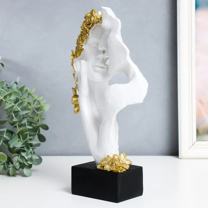 Бюст фигурка полистоун «Пара: Страсть. Цветы», белый с золотом, 6.5×18.5×30.5 см — Характеристики