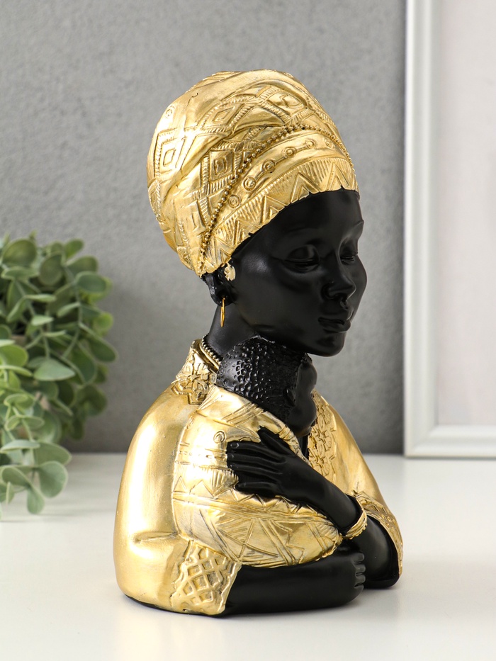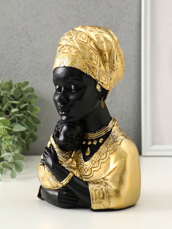Бюст полистоун «Африка - мать и дитя», чёрный с золотом, 12.5×10×21.5 см — Характеристики