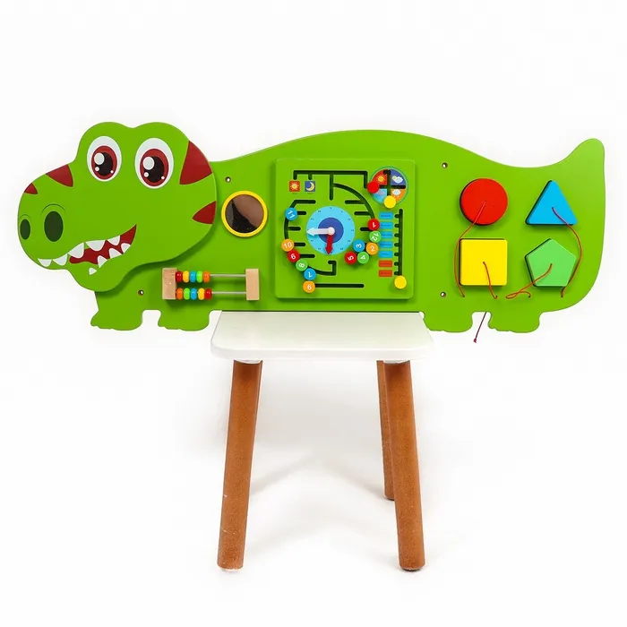 Развивающий бизиборд «Динозавр» — это многофункциональная игрушка для детей от 3 лет, выполненная в форме плоского бизиборда. Она сочетает в себе элементы лабиринта, сортера, счётов и часов, что делает её универсальной для игр и обучения. Идеально подходит для домашнего использования и занятий в детских садах.