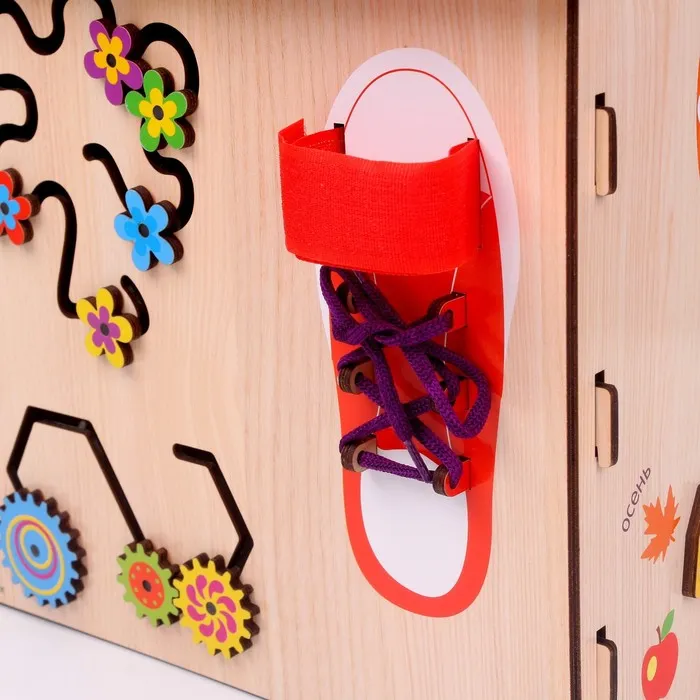 - Бизиборд можно использовать как самостоятельно, так и в сочетании с другими развивающими игрушками.